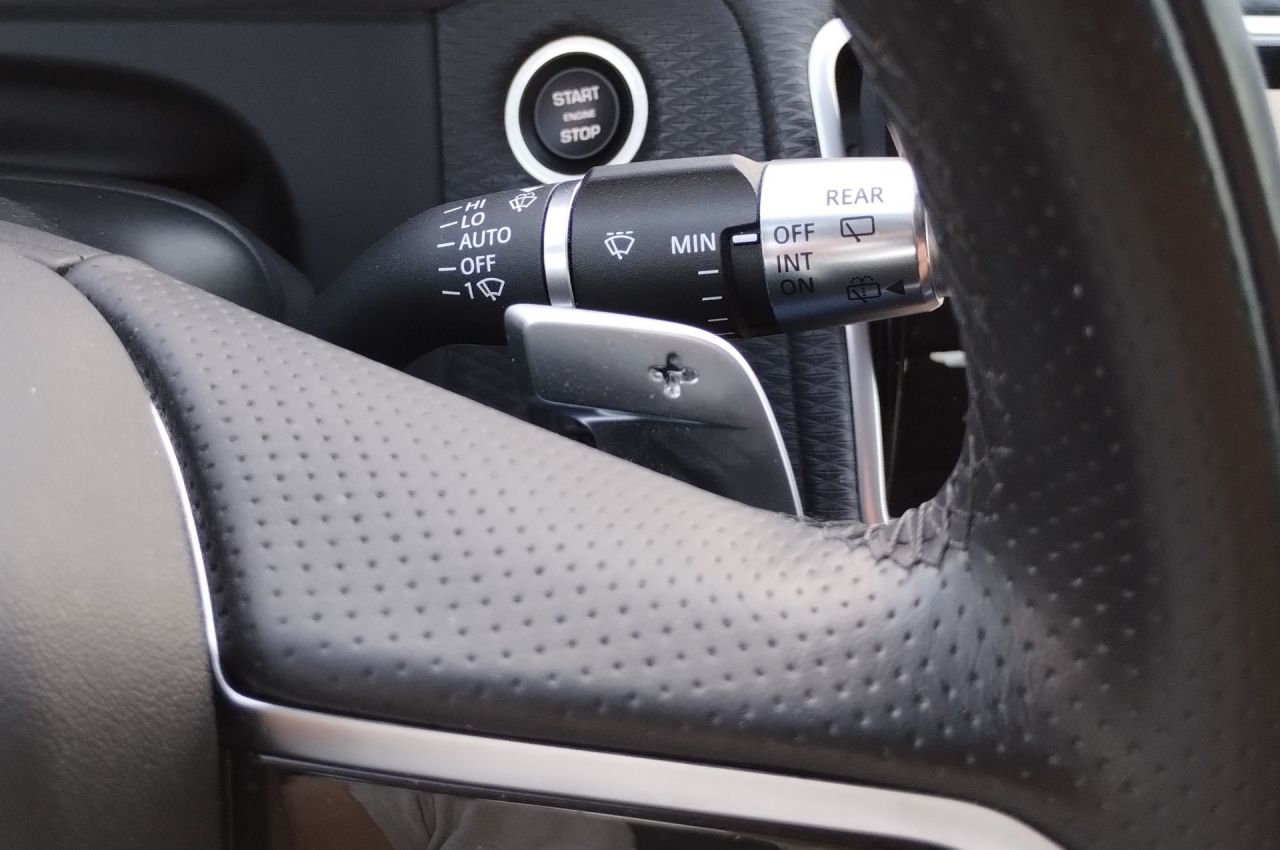 Μαύρα χειριστήρια αλλαγής ταχυτήτων στο τιμόνι.